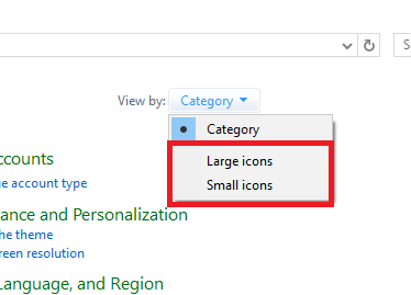 1-ابتدا وارد Control Panel ویندوز شده و از قسمت View by گزینهی Large icons یا Small icons را انتخاب کنید.