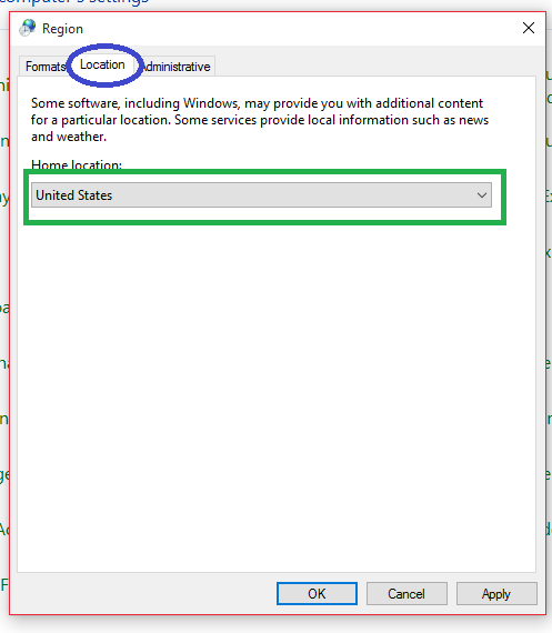 3-اکنون به برگهی Location رفته و از کشوی Home Location گزینهی Iran را انتخاب کنید.