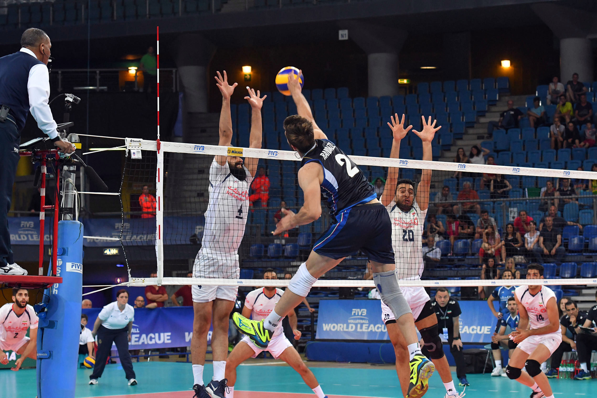 دِنی سزپیداس از جمهوری دومینیکن و ولادیمیر سیمونوویچ از صربستان داوران اول و دوم دیدار ایران و ایتالیا بودند.